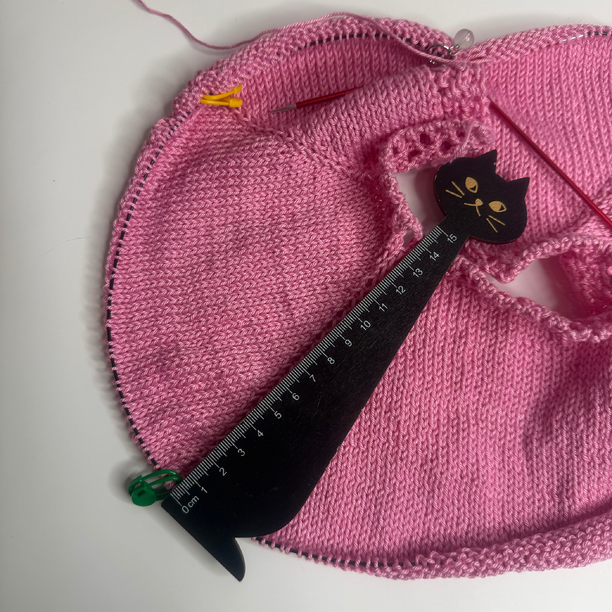 - Пример для кофточки на ребёнка 1–2 года:остановитесь, когда между регланными линиями будет 40−50 петель (значение зависит от толщины пряжи и желаемой свободы облегания).