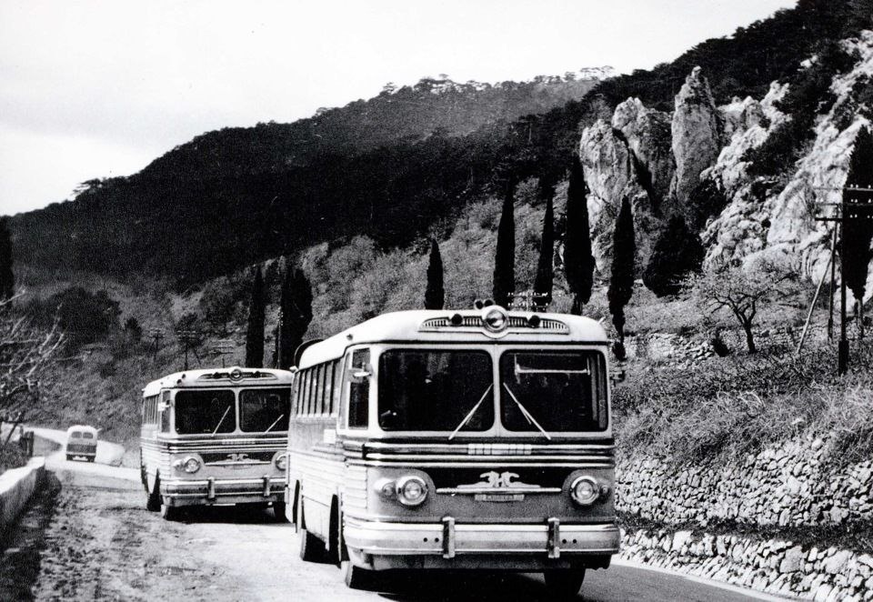Южный этап государственных приемочных испытаний автобусов ЗИС-127. Южнобережное шоссе. 1954/5 гг.
