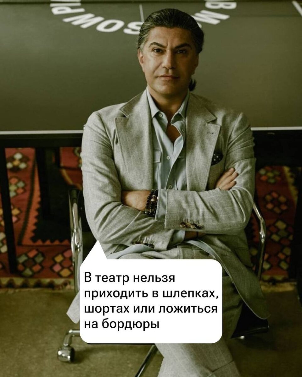 И ужесточить-таки дресс-код: шорты, шлёпки и другую пляжную одежду запретить. А еще издать соответствующие правила, чтобы зрители уважали театр и не ложились на бордюры. А вы за такую инициативу? 🔥 - да, в театрах должен действовать строгий дресс-код 🤔 - кажется, что такой контроль будет лишним 🗿- не хожу в театры 🙏KASSIR.RU есть в MAX. Подписывайтесь! ✅