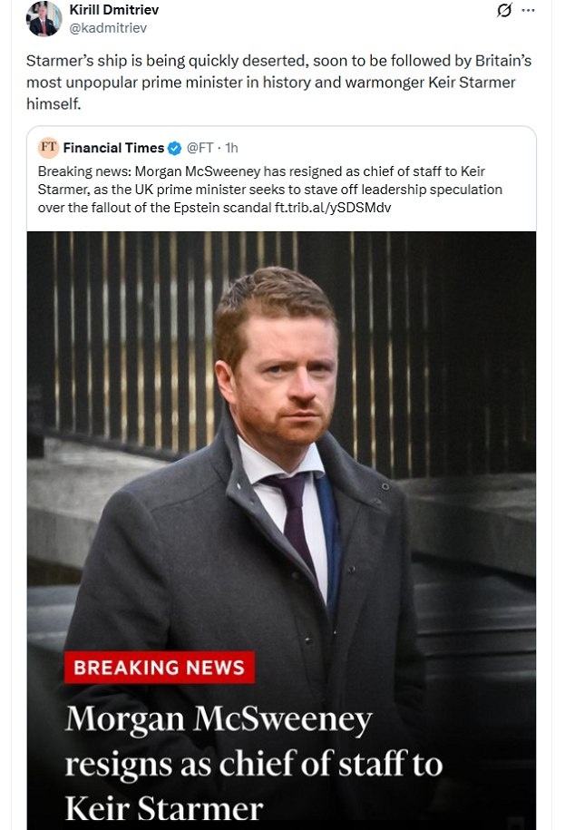 ' Putin's special envoy suggests Starmer’s days as PM are numbered