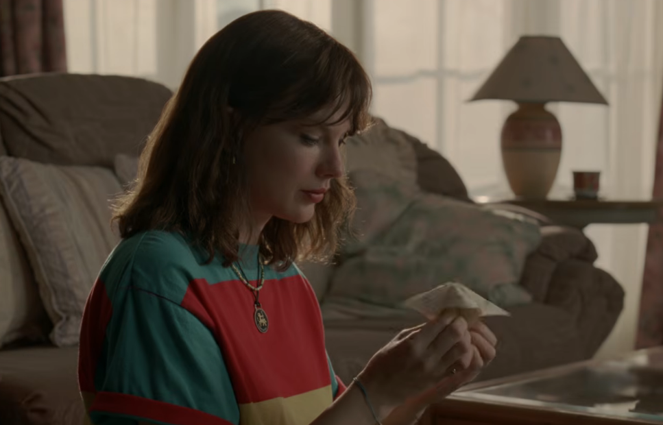 Но теперь небо — опалит». Это не просто «было темно — стало светло». Это переход от плотной, непроницаемой тьмы (оникс) к свету, который рождается изнутри (опалит). Опал не отражает солнце — он сам излучает переливы. Так и любовь в этой песне: она не «спасает» от тьмы. Она превращает саму тьму в нечто прекрасное — потому что теперь ты не один в ней. Первый куплет — один из самых жёстких в творчестве Свифт