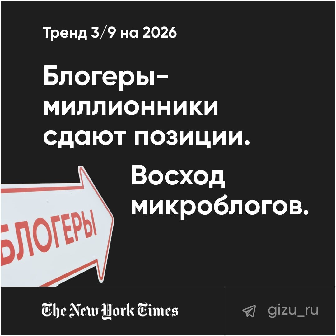 Восход эксфлюенсеров 🧠 [Тренд 3/9: Серия Тренды 2026] NewYork Times прогнозируют, что в 2026 году крупные инфлюенсеры сознательно снизят обороты: меньше постов, меньше рекламы, меньше участия в гонках за охватами. Причина — психическое здоровье. Так будет происходить потому что для многих профессия инфлюенсера не осознанный выбор, а стечение обстоятельств. Просто однажды залетел рилс, подписалась 500 тыс человек, прибежали рекламодатели и вы в ловушке: постоянный контент-план, обязательства, страх выпасть из алгоритмов и жизнь в режиме «я всегда должен быть интересным». Всё это приводит к потере себя настоящего. Поэтому крупные инфлюенсеры в 2026 будут реже выходить в онлайн, закрывать комментарии и уезжать «в тишину». Как я уже писал, именно это новый люкс. И вот тут появится вакуум, который займут микроблогеры, или как их уже называют, эксфлюенсеры (странное слово, но с журналистами NYT не будем спорить). Кто такие эксфлюенсеры? ➖Тысячи подписчиков (не миллионы) ➖Узкая тема