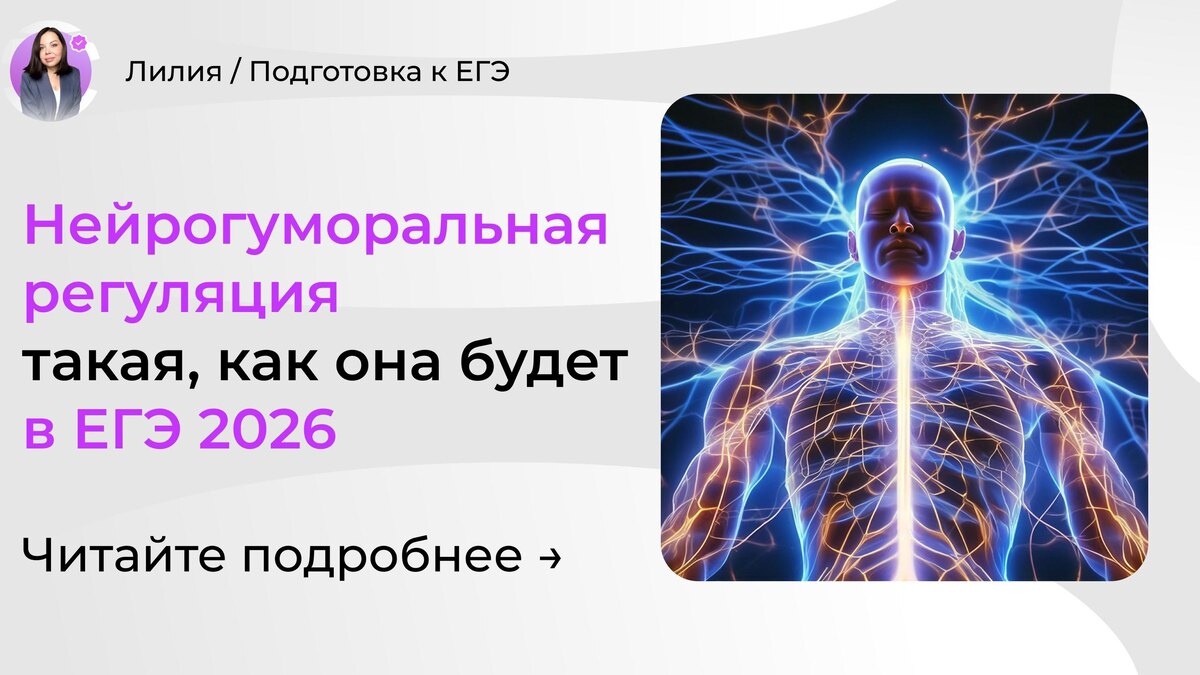 Нейрогуморальная регуляция — это не страшная тема, если один раз разложить её по 3 признакам. В конце — куда это чаще попадает в заданиях ЕГЭ. Нейрогуморальная регуляция — это когда организм управляет собой двумя “каналами связи”: нервным и гуморальным. Нервная регуляция работает через электрические импульсы, которые идут по нервным волокнам от ЦНС к органам. Гуморальная регуляция работает через гормоны (биологически активные вещества), которые разносятся к органам-мишеням с током крови. Если запомнить только это, тема уже решается в половине вопросов. Держите “шпаргалку из трёх строк”: Этого достаточно, чтобы в стрессовой ситуации не начать путать определения. Путаются чаще не в определении, а в конкретном признаке: например, говорят “гуморальная работает быстро”, потому что вспоминают слово “гормоны” (да, такое объяснение я когда-то получила от ученицы, может у вас также) Рабочий приём: сначала определите, как передаётся сигнал (нерв/кровь), а уже потом вспоминайте скорость