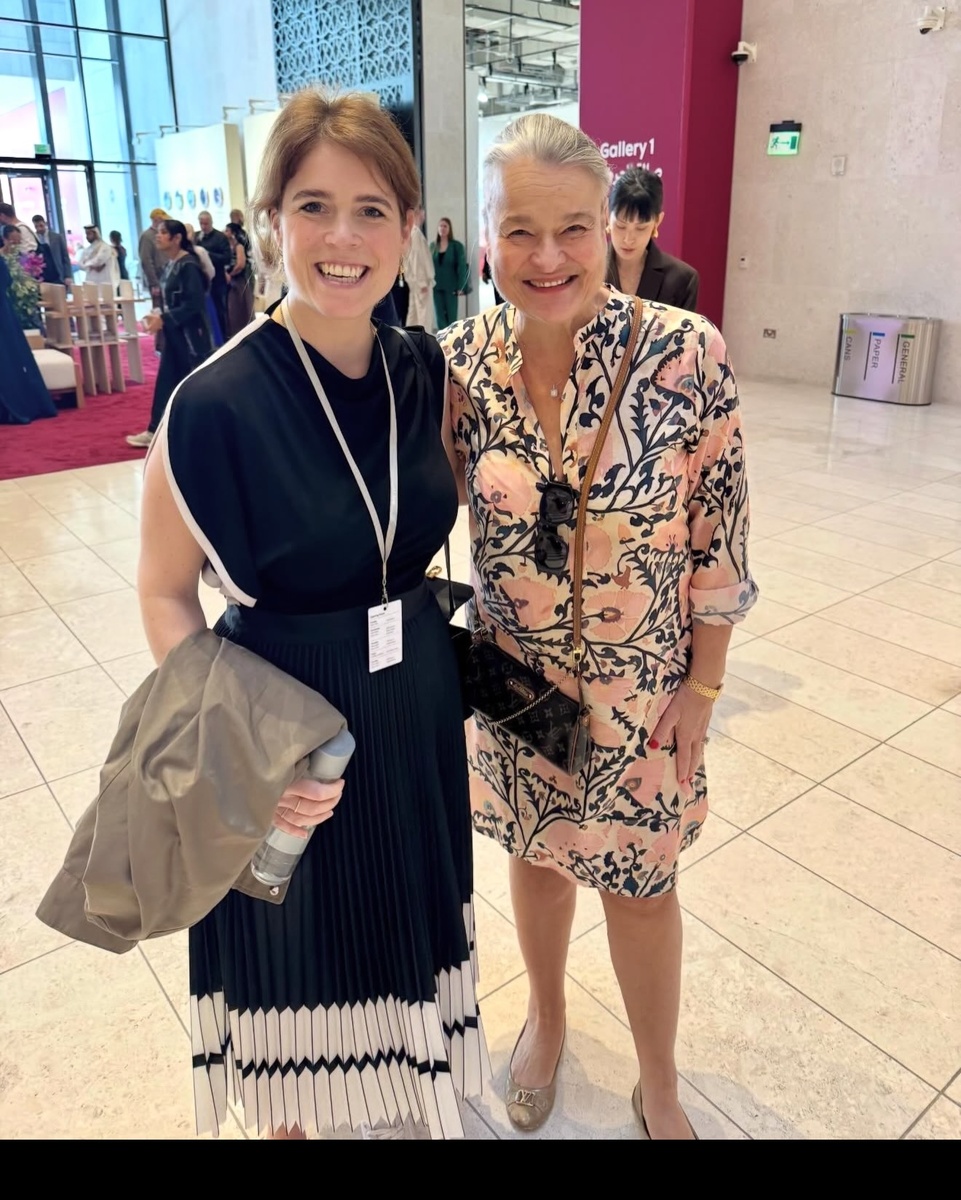 Принцесса Евгения и ее сестра принцесса Беатрис в последние несколько недель старались не привлекать к себе внимания на фоне новостей, которые усилили общественный интерес к семье. Их отец Эндрю Маунтбаттен-Виндзор и мать Сара Фергюсон все больше ассоциируются с осужденным за педофилию Джеффри Эпштейном. Принцесса Евгения продолжает работать в привычном режиме, насколько это возможно. Её сфотографировали на выставке Art Basel 2026 в Дохе, в Катаре, где она присутствует в качестве директора галереи современного искусства Hauser and Wirth на Сэвил-Роу. Как отметила королевский модный блогер royal fashion police, она выбрала преимущественно повседневные вещи, в том числе асимметричный топ и плиссированную юбку-миди с высокой талией от Reiss. Топ был отделан белой тесьмой по линии плеч и по бокам, а юбка была почти полностью черной, с двумя прерывистыми белыми полосами по подолу. В качестве аксессуаров она выбрала маленькую черную сумку через плечо от Mark Cross и пару простых белых кро