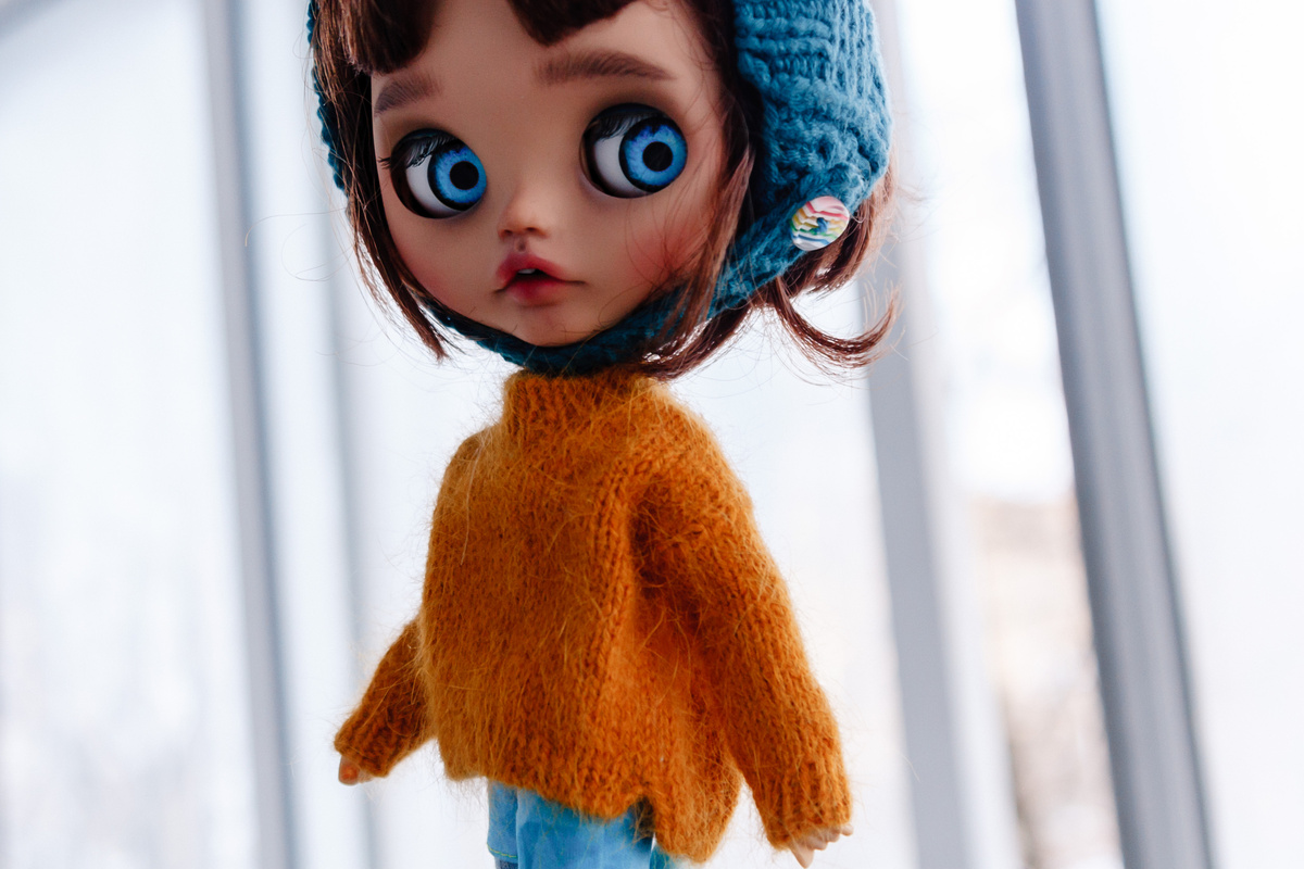 МК спицами. Свитер оверсайз с японским плечом на Блайз из Пуха норки
