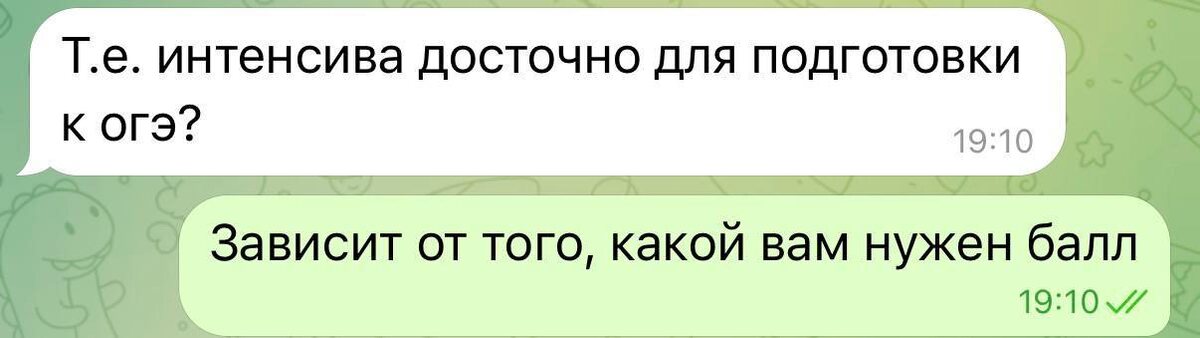 ? Тут я не могу ответить однозначно. Все зависит от целей, которые вы ставите перед собой на экзамене. ➡️Если нужно пройти порог, то интенсива может быть достаточно, но все равно придется учиться решать еще хотя бы 3-4 задания, чтобы в случае ошибок точно пройти порог. ➡️Если у вас цель сдать на 4 или 5, то интенсив вам поможет повторить темы и систематизировать знания (особенно по геометрии!). В любом случае это не волшебная таблетка. Чтобы учиться стабильно хорошо, нужно работать системно и последовательно. Разовое заучивание не поможет.