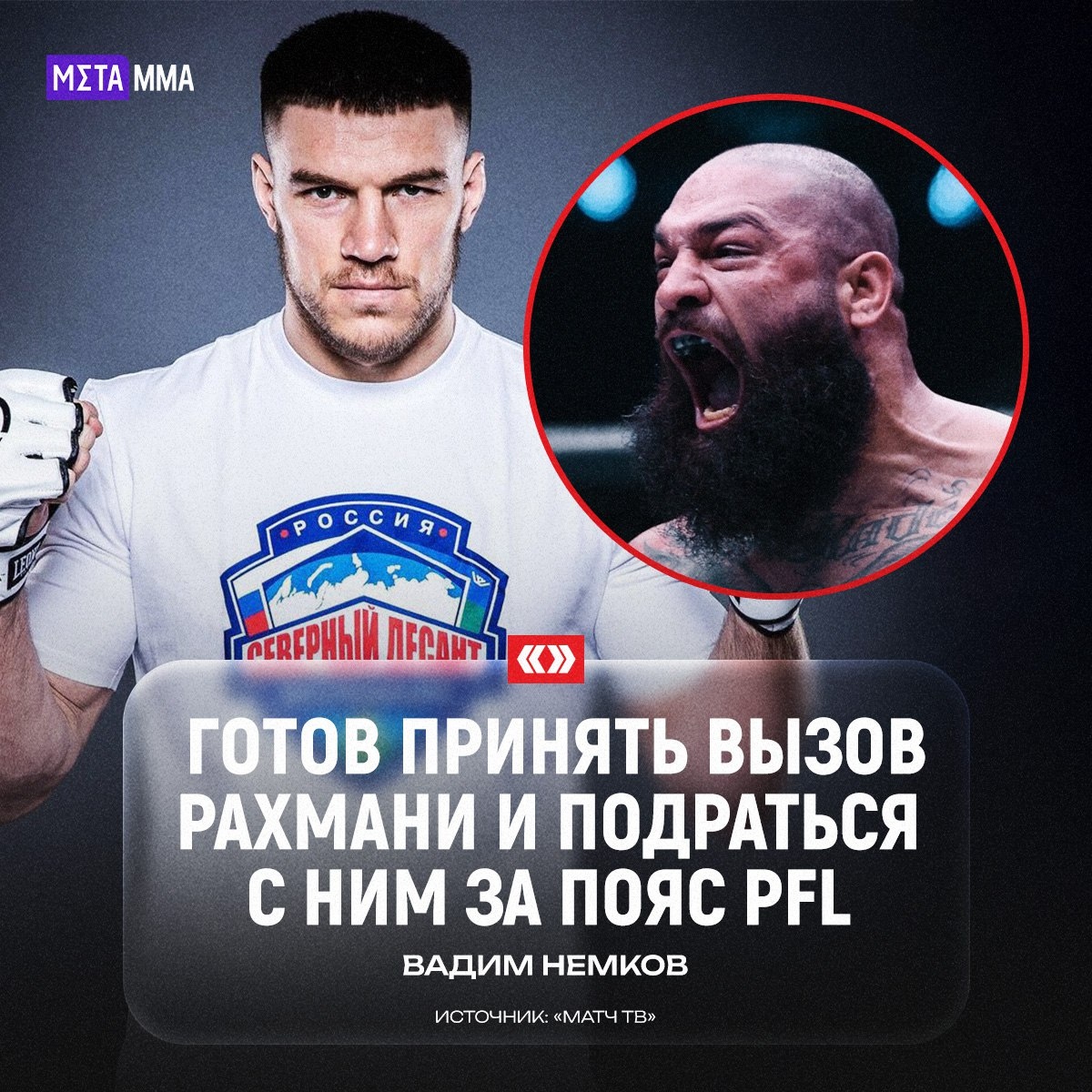 Чемпион PFL в тяжёлом весе Вадим Немков заявил о готовности провести титульный бой с Пуйя Рахмани после его победы ТКО в Дубае. Возможность этого поединка уже обсуждалась внутри организации. «Мне организация говорила, что, возможно, у меня с Рахмани будет бой. С удовольствием подерусь с ним, хорошо подготовлюсь», – процитировал Немкова «Матч ТВ». ❓ Нужен ли этот бой прямо сейчас? 👍 — Да, логичный титульник 🤔 — Есть более достойные претенденты 👊 Подпишись на Meta MMA | Meta MMA в MAX | Наш канал в ВК