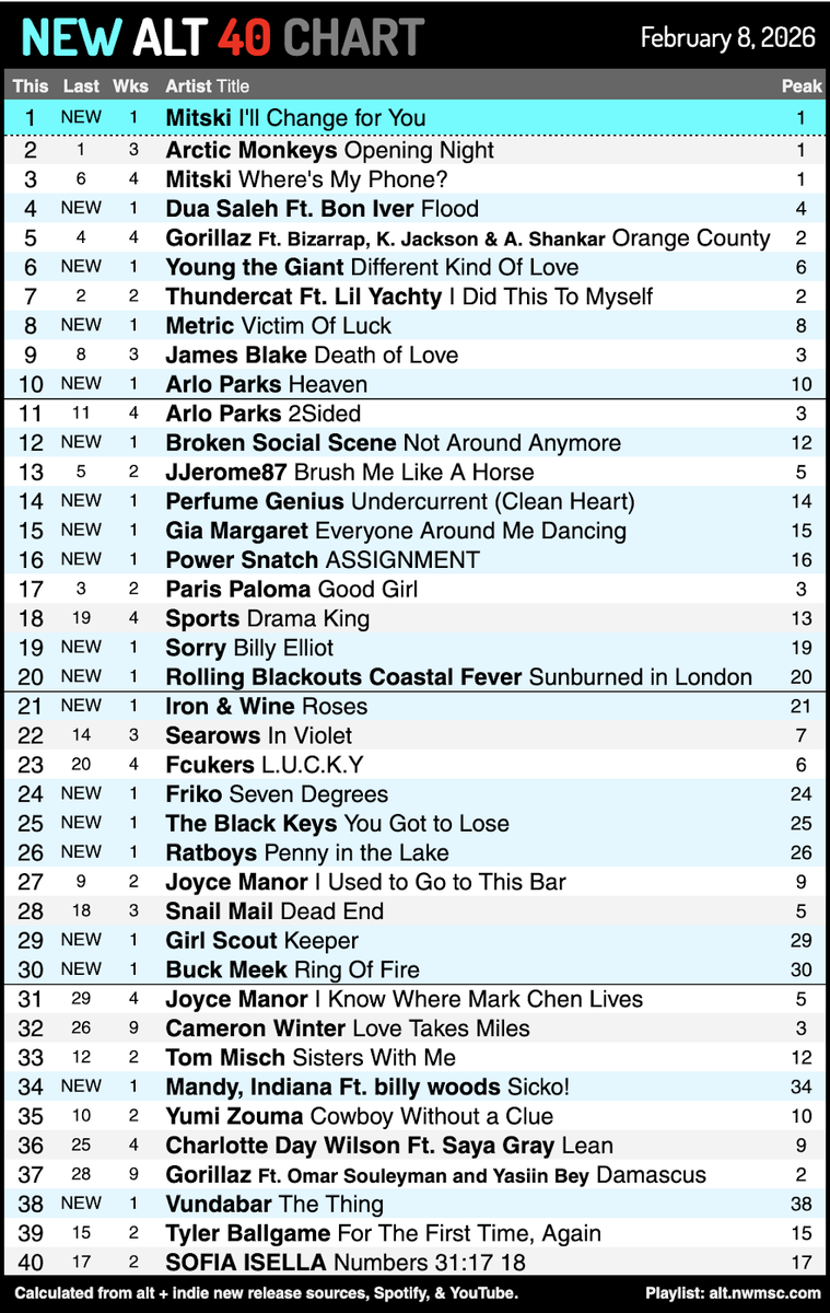 Представляем еженедельный интернет-чарт New Alt 40. Ниже подробности и видео новинок.