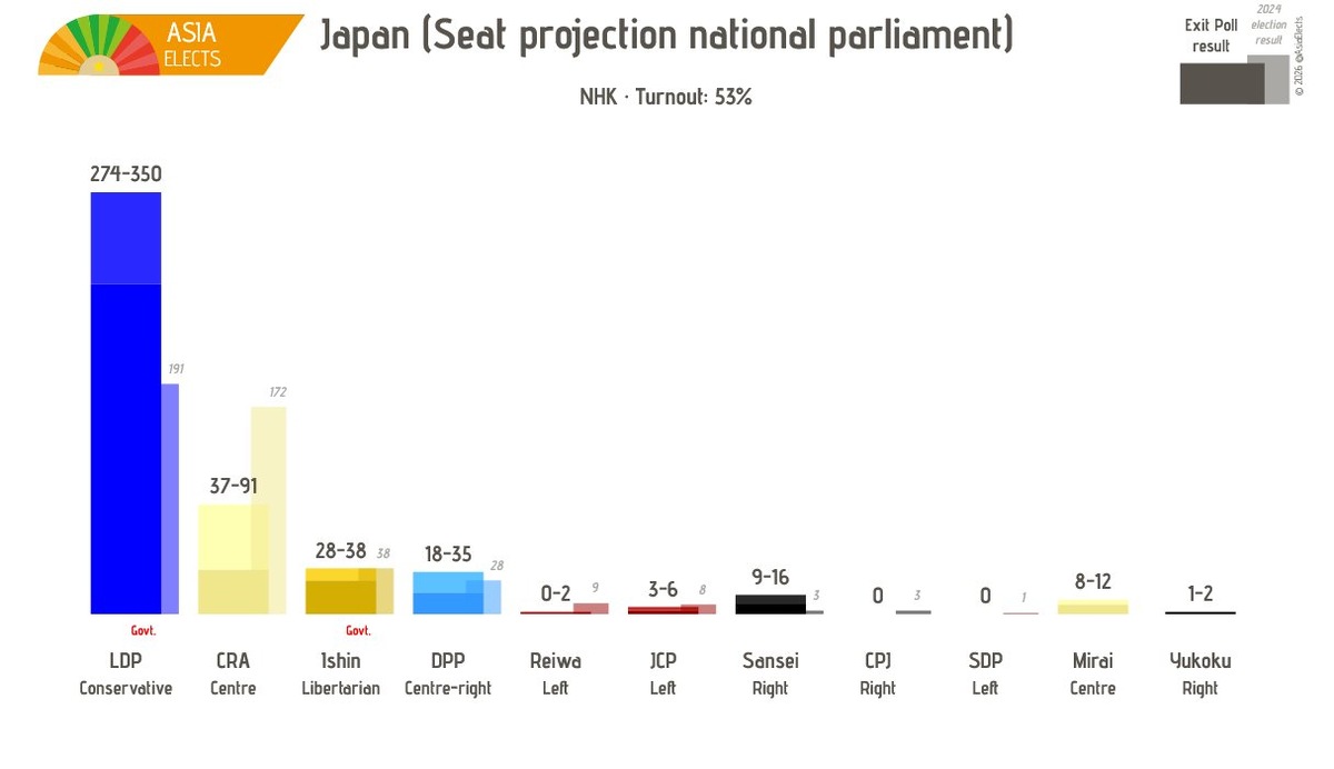 HUGE majority projected for Japan’s PM Takaichi's party in snap election