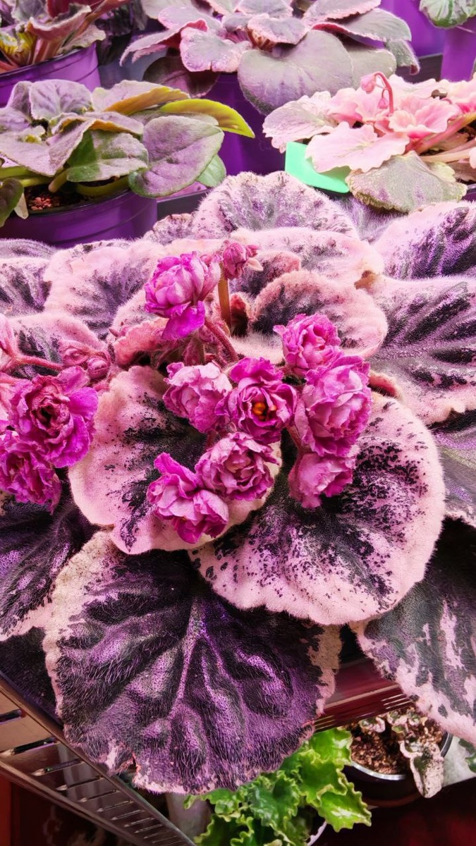! Итак, сегодня для вас позируют сорта фиалок: 1. НД-Роза Востока. Очень красивая и необычная фиалочка с фиолетовыми с белыми вкраплениями цветами-розочками и просто шикарной крупной розеткой с розовой пестролистностью. 2. АВ-Навсегда. Шикарные махровые крупные белые цветы с фиолетовыми лучами из середины, и все это великолепие на волшебной пестролистной розетке. Выглядит потрясно, однако, сорт размножается и растет крайне медленно, а листва довольно чувствительна к огрехам в агротехнике. 3. Волшебная жёлтая фиалочка ЛЕ-Золото Нибелунгов. Цветение очень обильное, а белые махровые розочки с яркой жёлтой серединкой и синими вкраплениями выглядят шикарно! 4. ЕК-Россияночка. Красивый махровый шапочный сорт с белыми цветами с фиолетовой пропиткой в середине и такой же карандашной обводкой по краям лепестков.