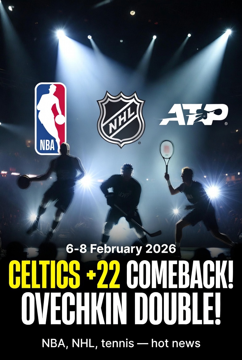 В NBA 6 февраля Boston Celtics выиграли у Miami Heat со счётом 98–96. В первой половине Heat вели на 22 очка. Во второй половине Celtics смогли отыграться. Jaylen Brown набрал 29 очков, Payton Pritchard — 24. Pritchard забил трёхочковый за 1 минуту 31 секунду до конца — этот бросок принёс победу. У Celtics теперь пять побед подряд. В НХЛ Александр Овечкин недавно забил два гола в одном из матчей Washington Capitals. Один из голов — в большинстве. Capitals выиграли тот матч. На начало февраля у Овечкина 26 голов и 48 очков в 22 играх сезона. В теннисе на турнире ATP 500 в Роттердаме (ABN AMRO Open) 8 февраля проходят полуфиналы. Один из матчей — Jannik Sinner против другого игрока (Андрей Рублёв выбыл в четвертьфинале, проиграв de Minaur). Sinner сейчас первый в рейтинге ATP. Турнир идёт на харде в зале. Это основные события за 6–7 февраля. Если хочешь, могу подробнее рассказать про любой матч или прислать обложку. Что из этого смотрел?