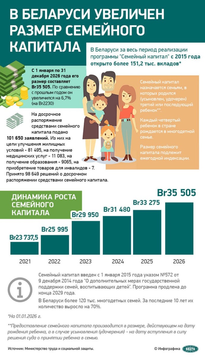 🔵С 1 января 2026 года в Беларуси увеличен размер семейного капитала