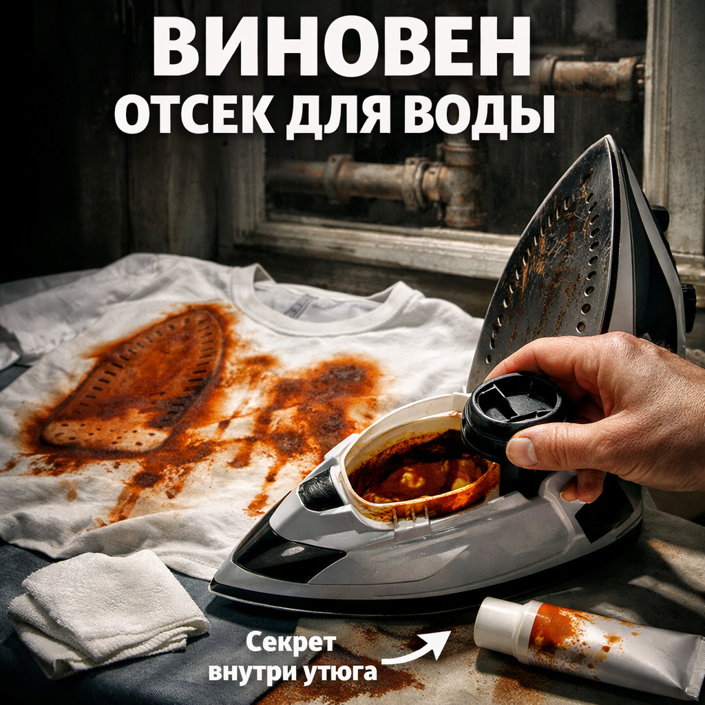 Вы достаёте из-под утюга идеально выглаженную светлую рубашку и видите их — предательские жёлто-коричневые, ржавые разводы или пятна , повторяющие форму паровых отверстий. Паника, попытка отстирать, а после следующей глажки — история повторяется. Знакомая картина? Первое действие — схватить средство для чистки подошвы и отдраить её до блеска. Но пятна возвращаются вновь. ⏸️ Стоп! Вы чистите не то место. Если подошва визуально чиста, без нагара и прилипших волокон, значит, грязь идёт изнутри. Виновник — некачественная вода, превратившая внутренности вашего утюга в источник ржавчины и бактерий. Вода из-под крана, особенно в домах со старыми железными трубами, содержит растворённые соли железа, кальция и магния (та самая жёсткость). Когда вы заливаете её в резервуар утюга и нагреваете, происходят три процесса: Итог: при следующем мощном паровом ударе эта рыжая взвесь выстреливает из отверстий подошвы прямо на ткань, создавая стойкие загрязнения. Чистка подошвы снаружи здесь бесполезна. Ну