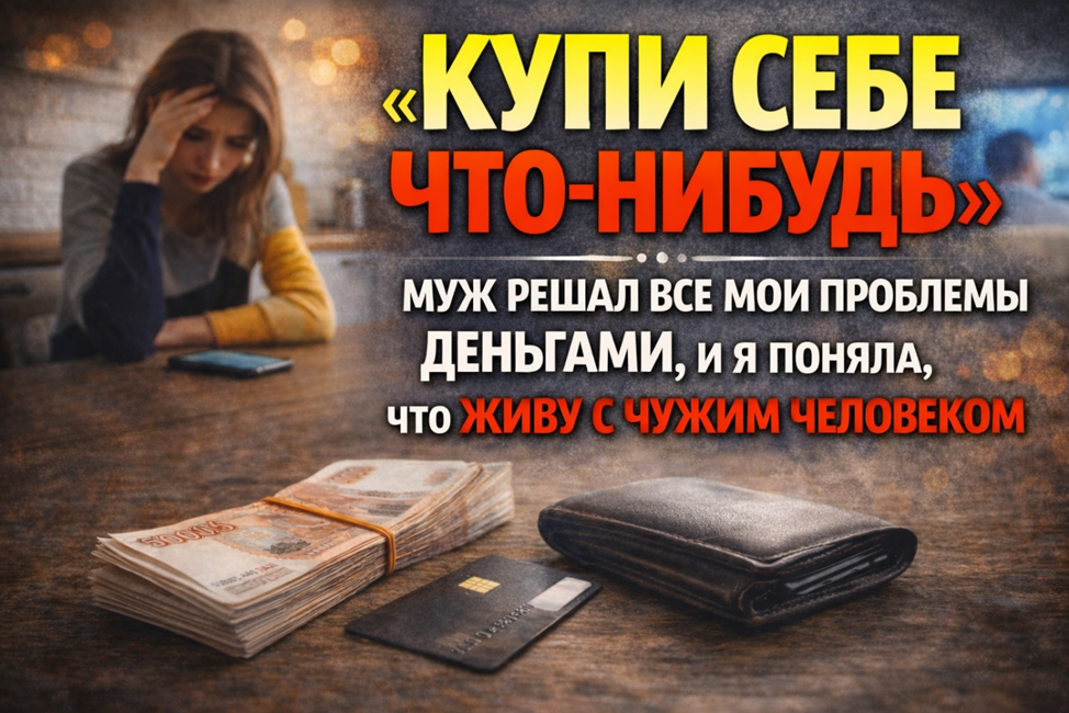 Андрей вошёл, посмотрел на меня и спросил. "Что случилось?" Я попыталась объяснить сквозь слёзы. Он молча выслушал, достал кошелёк и положил на стол пять тысяч рублей. "Купи себе что-нибудь. Сходи в салон, в магазин. Развеешься", сказал он и вернулся к телевизору.