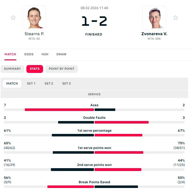 ⚡ Вера Звонарёва (41 год) победила Питон Стирнс в первом круге WTA 1000 в Дохе со счетом 2-6, 6-2, 6-3 💪