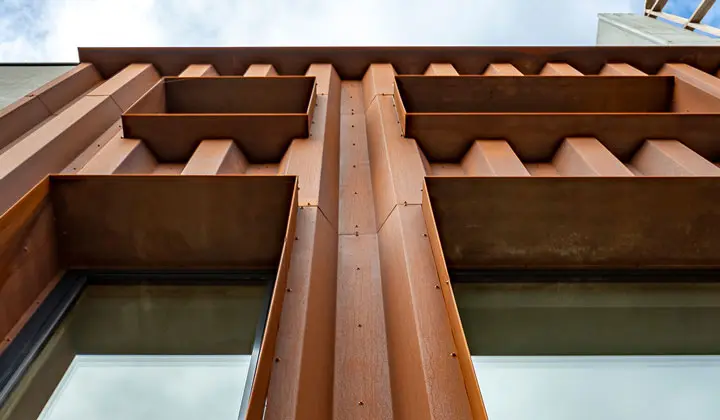 Не менее важна и технологичность материала. Кортен легко поддается резке, сварке и гибке, что делает его удобным для создания как масштабных фасадов, так и сложных декоративных элементов. Архитекторы получили металл, который можно свободно формовать, не жертвуя прочностью.