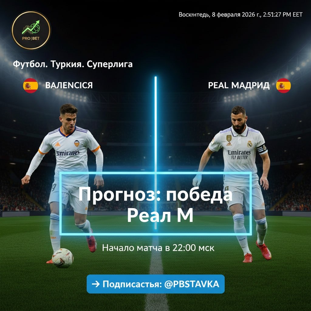 🇪🇸 Испания. Ла Лига 🏟 Валенсия — Реал Мадрид ⏰ Начало: 23:00 мск Мадридский «Реал» приезжает на «Месталью» в статусе фаворита, и сегодня все факторы играют на руку «сливочным». Пока «Валенсия» залечивает раны после кубковой драмы, Мадрид планомерно готовился к этому выезду. Почему победа «Реала» — это основной вариант на сегодня? Усталость «Валенсии»: Хозяева на неделе провели тяжелейший матч в Кубке Испании, где не только проиграли, но и физически «выгорели». Глубины скамейки у Рубена Барахи катастрофически не хватает, чтобы без потери качества играть дважды в неделю против топов. Свежесть Мадрида: В отличие от соперника, «Реал» имел полноценную неделю на подготовку и восстановление. В февральском графике 2026 года лишние дни отдыха — это колоссальное преимущество. Класс даже без лидеров: Да, сегодня не будет Винисиуса (дисквалификация) и Родриго (травма). Но атакующий кулак из Мбаппе, Браима Диаса и Беллингема всё равно выглядит устрашающе для обороны «Валенсии». Тот же Бра