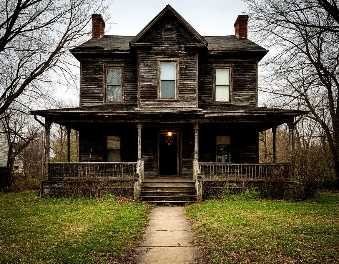 Дом нашёлся легко — он выделялся даже здесь. Двухэтажный, из тёмного кирпича, с заколоченными окнами, но с идеально чистой тропинкой к крыльцу. И странная деталь — над дверью висел не фонарь, а старая масляная лампа, которая горела ровным, неподвижным пламенем, несмотря на ветер.