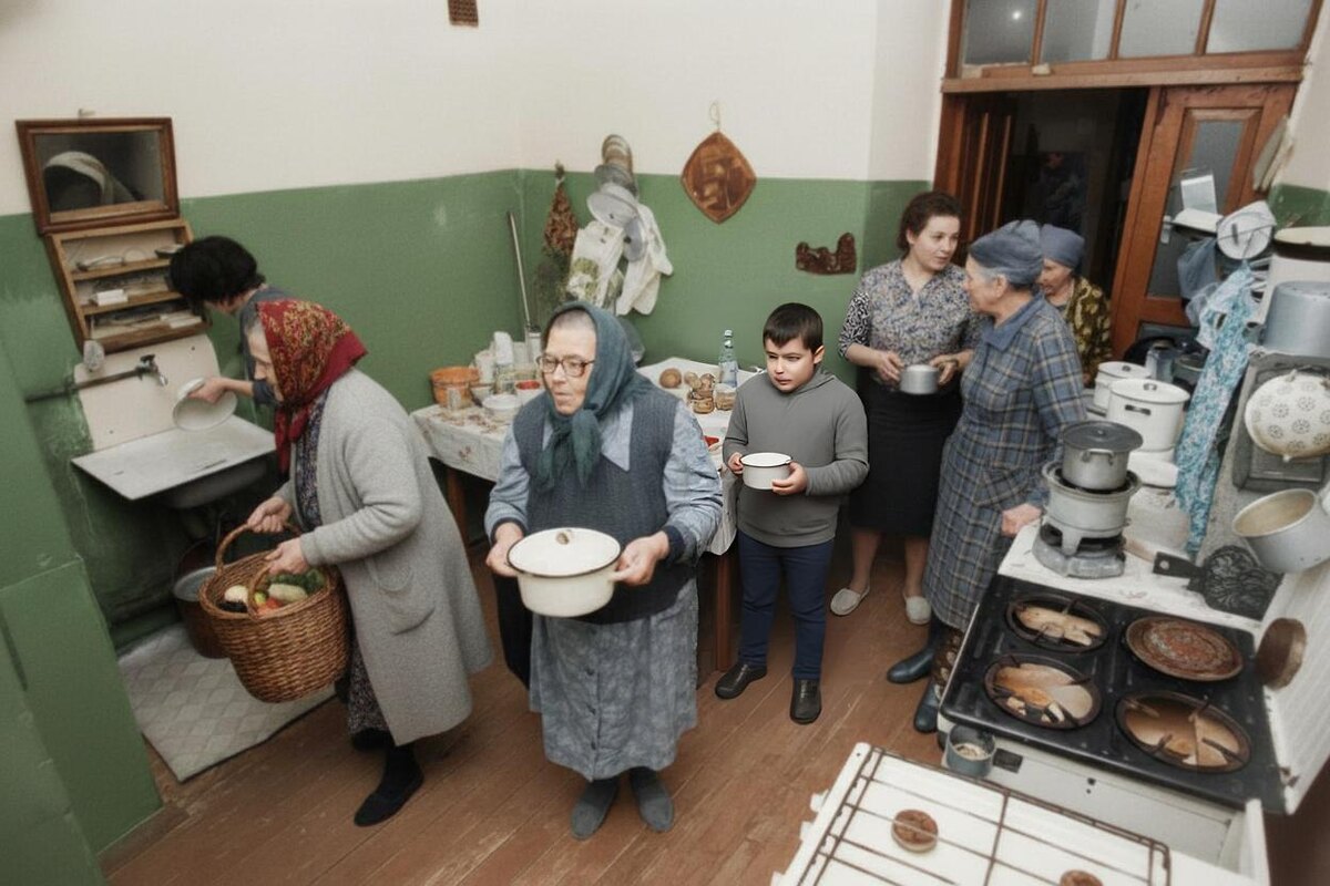 Общая кухня на пять семей — это сложно, причем обычно готовили на кухне а еду разносили по комнатам. Да Амбре был ещё тот.