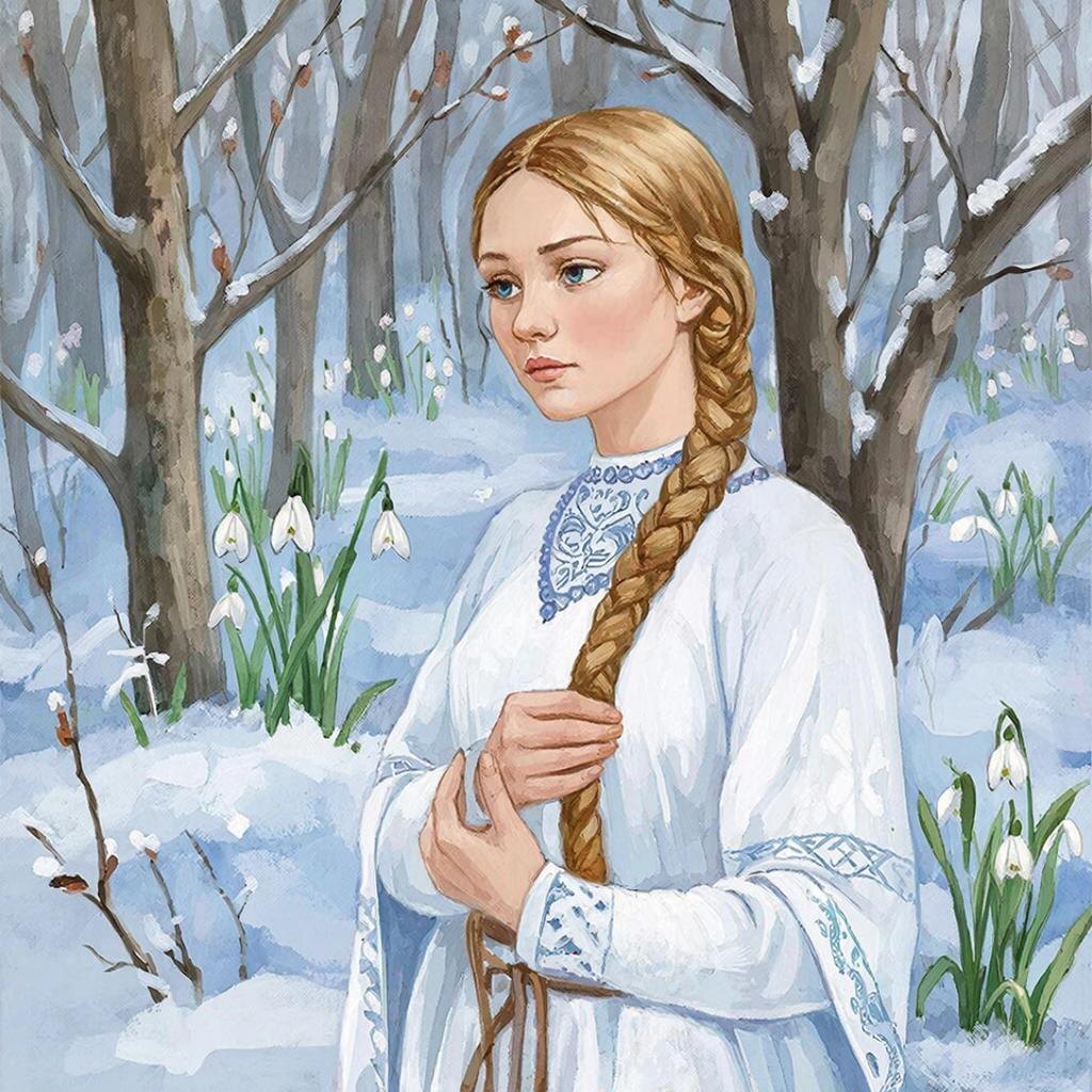 По преданиям древних славян, Снегурочка рождалась из снега весной, олицетворяя собой хрупкость и красоту зимней природы перед наступлением тепла. Она ассоциировалась с чистой душой, искренностью и верностью традициям предков.