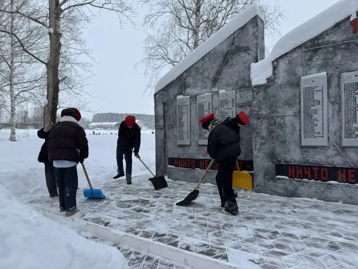 🇷🇺В рамках всероссийской патриотической акции «Снежный десант» бойцы отряда Юнармии МБОУ “ Урусовская ООШ имени Р. Закирова” повели трудовой десант у обелиска павшим землякам в годы ВОВ. Также юнармейцы почистили снег во дворе у матери участника СВО - выпускника Урусовской школы.