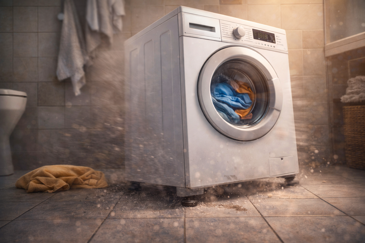 Иногда кажется, что у стиральной машины есть характер: включаешь отжим — и она начинает ползать, стучать, подпрыгивать, уезжать от стены. Это пугает и раздражает, но в большинстве случаев причина простая. Машина двигается, когда вибрация превращается в толчки, а толчки находят, от чего оттолкнуться: неровный пол, неправильную установку или неудачную загрузку. Главный вопрос: почему всё спокойно стирает и вдруг начинает плясать именно на отжиме? Потому что на отжиме барабан вращается быстро, и малейший перекос загрузки превращается в большую центробежную силу. Представьте, что мокрое одеяло сбилось в один ком и оказалось с одной стороны барабана. Машина пытается крутить это колесо с грузом, который не по центру. В итоге она не просто вибрирует, а получает серию ударов по подвеске и корпусу. Чем выше обороты, тем сильнее эта картина. Поэтому у одной и той же машины тихий режим может быть спокойным, а максимальный отжим — превращать ванную в барабан. Почти всегда история начинается с про