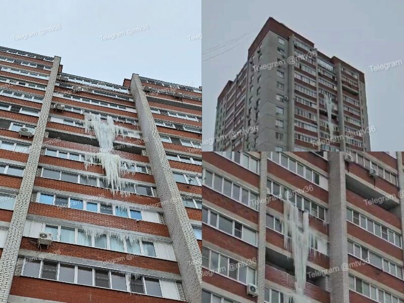 Свисающий с многоэтажки замерзший «водопад» запечатлели на фото воронежцы