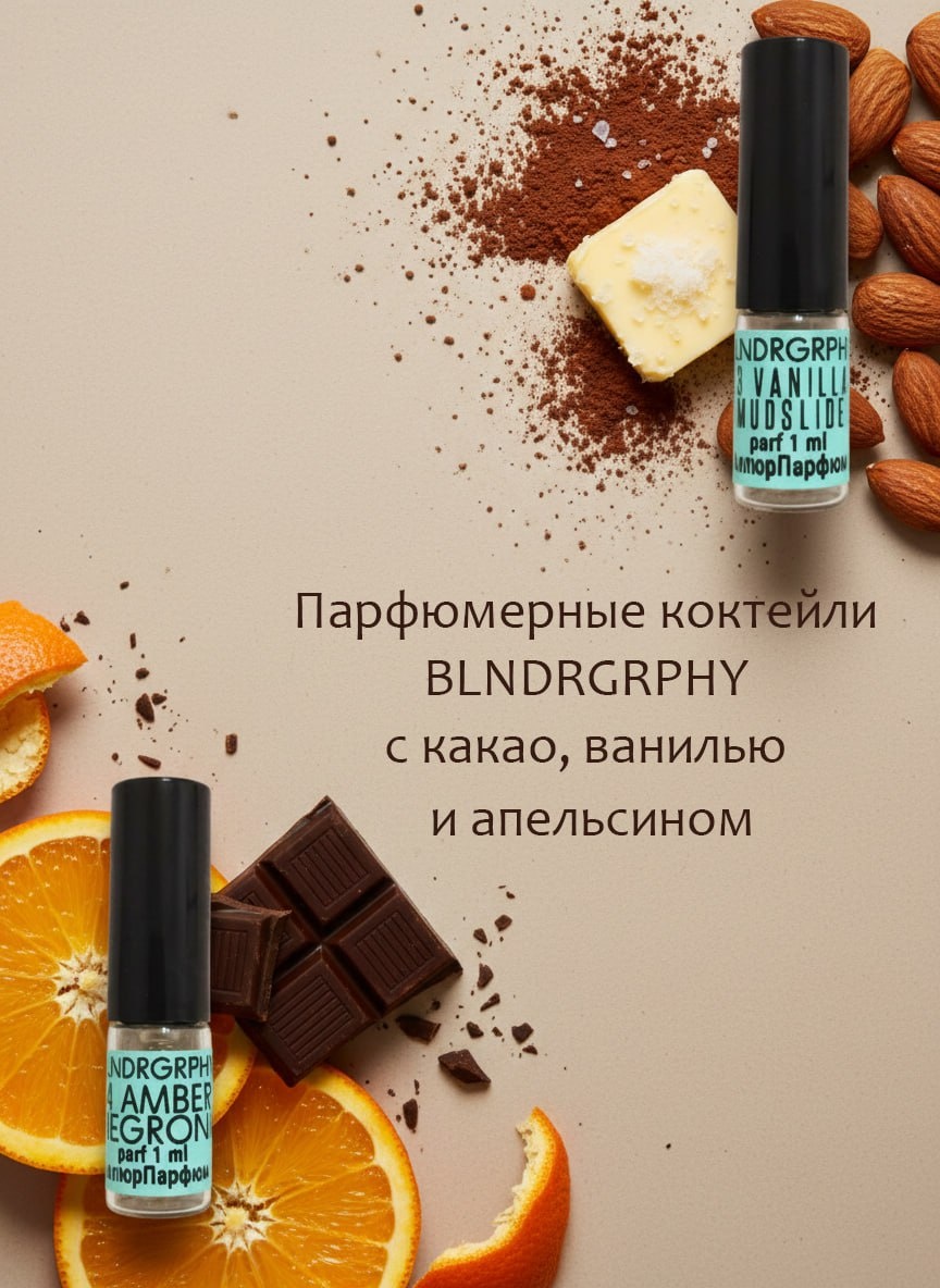 одной из главных ролей. "Vanilla Mudslide" - идеальное лакомство для любителей парфюмерной сладости: плотный слой сливочного масла покрыт россыпью какао и усыпан невесомой миндальной пудрой. "Amber Negroni" звучит сдержаннее, но не уступает предыдущему аромату в красоте: апельсиново-мандариновый сок смешивается с шоколадной стружкой, пропитанной каплями освежающего напитка: 🟢 https://allureparfum.ru/katalog/zhenskaya-parfyumeriya/blndrgrphy/03-vanilla-mudslide.html 🟢 https://allureparfum.ru/katalog/zhenskaya-parfyumeriya/blndrgrphy/04-amber-negroli.html
