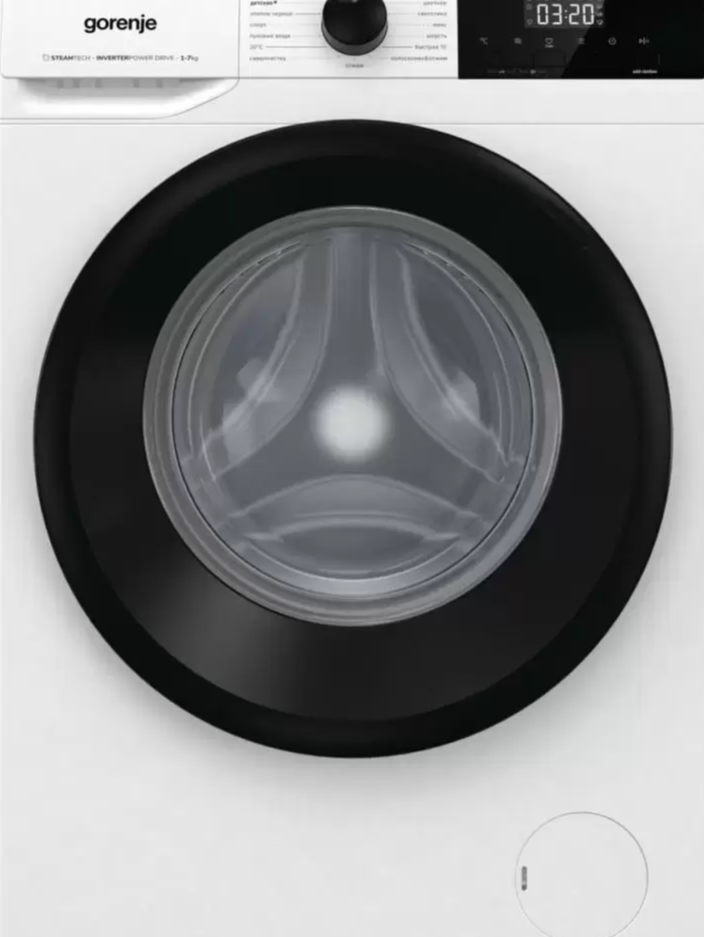 Стиральная машина Gorenje W1NHEI74SAS — это компактная и технологичная модель для повседневного домашнего использования, ориентированная на экономичную стирку, бережное отношение к тканям и стабильную работу при ограниченном пространстве. Машина относится к линейке современных энергоэффективных решений бренда и хорошо подходит для городских квартир. Модель выполнена в формате отдельно стоящей стиральной машины с фронтальной загрузкой. Корпус рассчитан на стандартную установку под столешницу или в нишу, что удобно для ванных комнат и кухонь с ограниченной площадью. Конструкция сбалансирована по массе и жесткости, благодаря чему машина устойчиво работает даже на высоких оборотах отжима без выраженной вибрации. Фронтальная загрузка облегчает доступ к барабану, а широкая дверца позволяет без труда загружать объемные вещи — полотенца, постельное бельё, повседневную одежду. В основе модели — фирменный барабан WaveActive. Его волнообразная перфорация и сглаженные края создают мягкое движение
