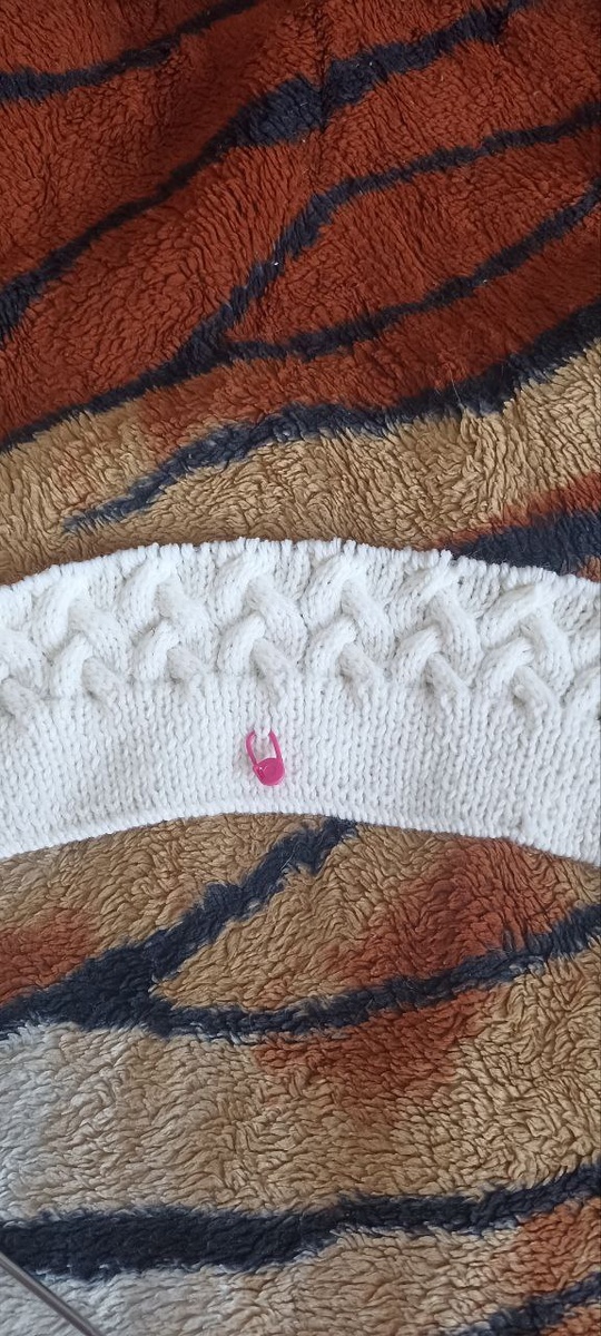 Отвязано всего два рапорта. «Говорят, что белый цвет в вязании — самый капризный, но посмотрите, как роскошно на нем смотрятся косы! ✨ Сегодня делюсь своими продвижениями по свитеру. Работа идет не так быстро, как хотелось бы, но каждый ряд — это чистое удовольствие. Узор с переплетениями получается очень объемным и "сочным". Для меня вязание из светлой пряжи — это всегда про какую-то особенную аккуратность и медитацию. #вязание #рукоделие #вязаниеспицами #своимируками #хобби.
