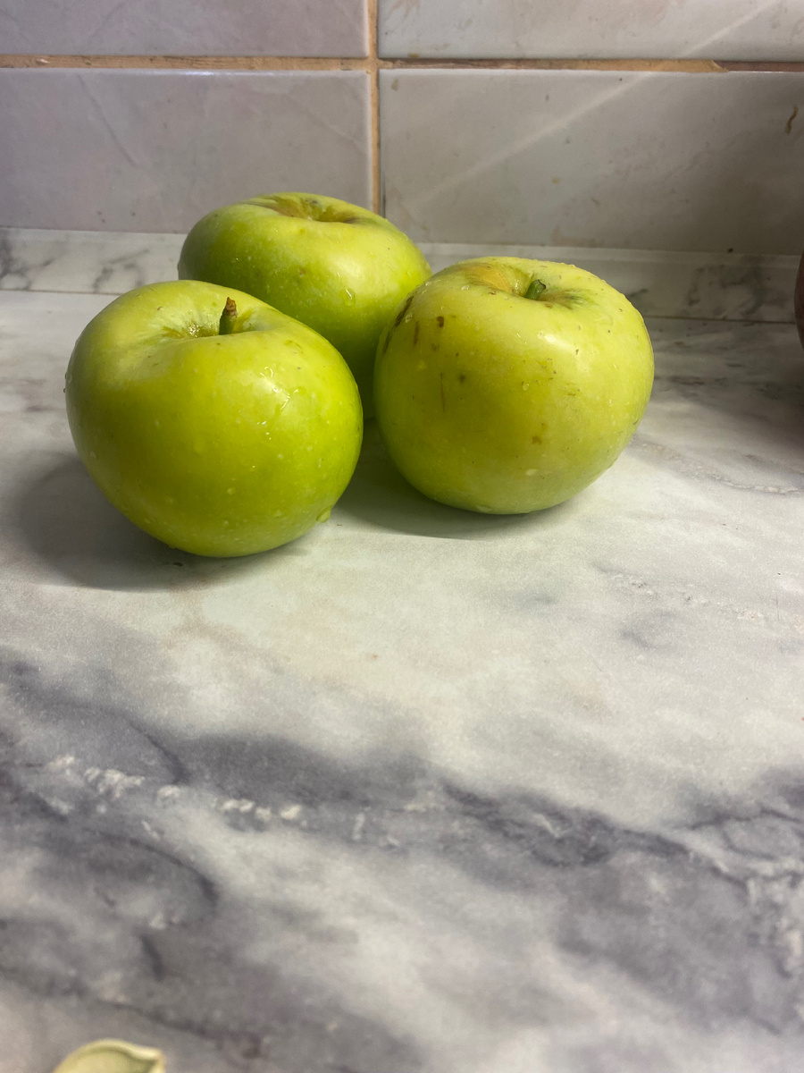 3 яблока (желательно сорта гренни Смит) помыть, почистить от кожуры и порезать кубиками