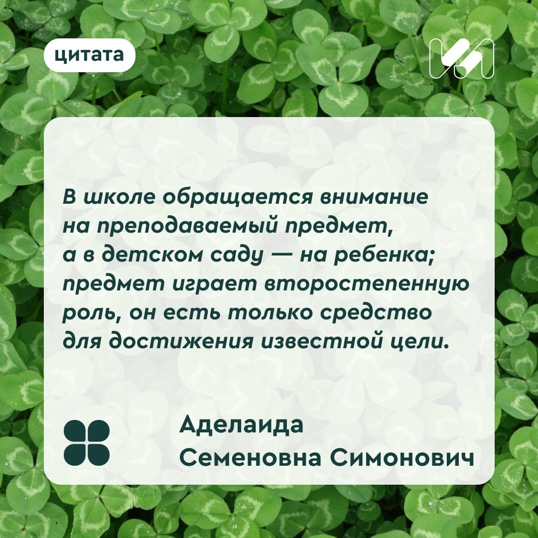 🎓 В рубрике о выдающихся педагогах — Аделаида Семеновна Симонович, российский педагог, издательница и теоретик общественного дошкольного воспитания. Человек, для которого в центре образования всегда стоял ребенок и его развитие. В 1866 году она открыла собственный детский сад в Санкт-Петербурге, изучив опыт системы Фребеля. В программе были Священное Писание, чтение и письмо, рисование, аппликация, конструирование — и даже детский театр теней. Симонович учредила первый в России педагогический журнал по дошкольному воспитанию «Детский сад», где публиковались тексты великих педагогов и практические материалы для воспитателей. Позже она основала ясли для крестьянских детей при сельской школе. Ее труды стали важной частью истории дошкольного образования. Клевер Лаборатория