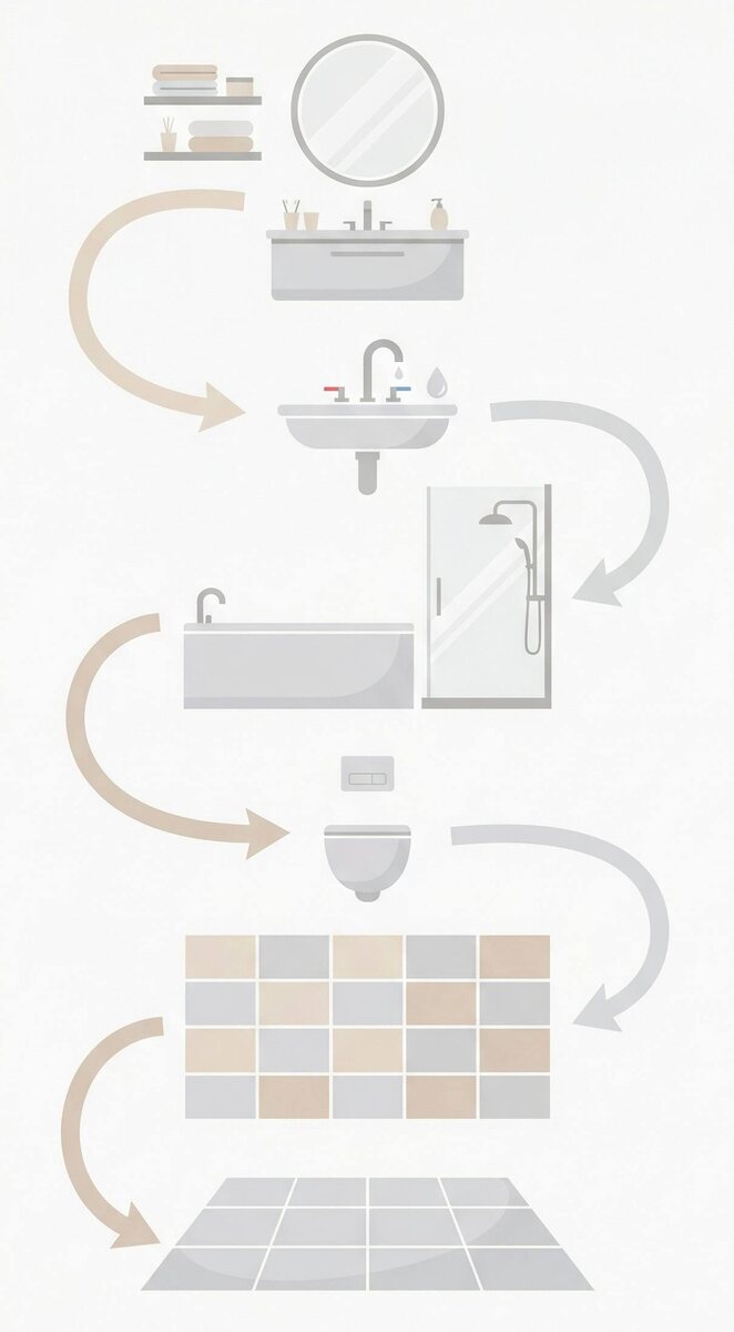 🛁 Чтобы ванная была чистой, а уборка не занимала полдня, двигайтесь по простой схеме: 1️⃣ Сверху вниз Полки, шкафчики, зеркало — сначала убираем пыль и брызги, чтобы грязь не падала на уже чистое. 2️⃣ Сантехника Раковина, смесители, ванна или душевая. Нанесли средство — дали подействовать — смыли. 3️⃣ Унитаз Сначала внутри, потом снаружи. 4️⃣ Плитка и стены Особое внимание — зонам возле раковины и душа. 5️⃣ Пол Последний этап: подмести/пропылесосить и вымыть пол. Сохраняйте, чтобы не искать схему в следующий раз ✨ Нужна профессиональная уборка? Напишите нам и мы рассчитаем стоимость для вашего дома 👇🏻 Менеджер в телеграм
