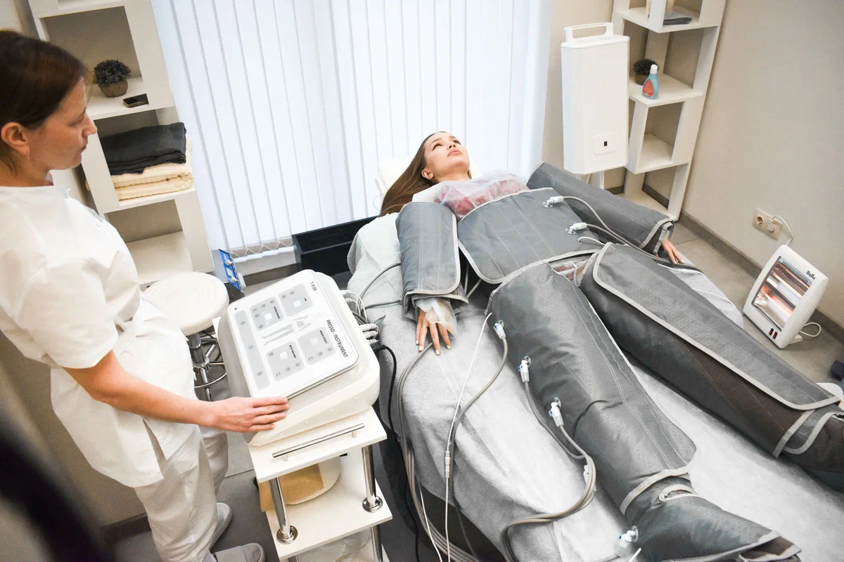 К вечеру ноги могут становиться “тяжёлыми”: обувь давит, появляется ощущение налитости, а следы от резинок держатся дольше обычного. И чаще всего хочется не героизма, а простого результата — чтобы стало легче и тело нормально восстановилось. Прессотерапия в AquaImpuls — как раз про это: мягко, комфортно и без “терпеть”. Прессотерапия — это аппаратная процедура, где на ноги (иногда и на другие зоны) надеваются специальные манжеты. Они ритмично и мягко сжимают ткани волнами, как очень аккуратный компрессионный массаж. По ощущениям это обычно приятно: давление ощутимое, но комфортное. После сеанса многие описывают состояние как “ноги отпустило” и “стало легче ходить”. Чаще всего на прессотерапию приходят девушки, которым знакомо: На сайте часто встречаются два формата — и это действительно удобно. Сеанс прессотерапии — это полноценная процедура по выбранной программе. Обычно её выбирают, если запрос общий: отёчность, тяжесть, восстановление, желание “разгрузить” ноги и тело. Прессотерапия