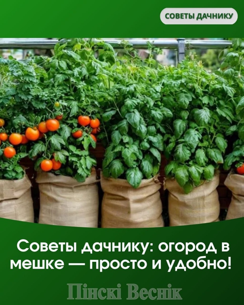 ! 🟦Хотите свежие овощи без хлопот? Выращивайте томаты, огурцы, перец и даже картофель прямо в мешках из мешковины или полиэтилена! 🔵Плюсы: дешево, мобильно (спасает от заморозков), без сорняков, урожай на любой почве. Устанавливайте на подставки, подпирайте опорами и поливайте в дренажную колонну. Идеально для маленьких участков! Подробности на p-v.by @Пинский Вестник 📱Ютуб 📱ВК 📱ИНСТАГРАМ 📱ОК 📱ФЕЙСБУК 📱ТИК ТОК Прислать новость