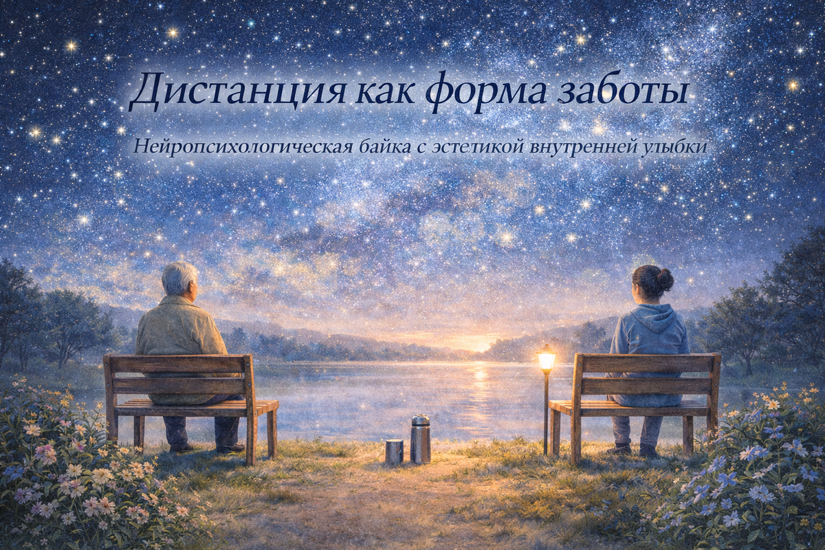 Нейропсихологическая байка с эстетикой внутренней улыбки Я давно думаю об одной вещи, и она кажется мне одновременно простой и очень непростой. Мы привыкли считать дистанцию признаком холода. Как будто если стало дальше, значит стало хуже. Как будто близость обязана быть плотной, постоянной, без пауз, без воздуха. Но жизнь устроена тоньше, и иногда она делает странный, почти невидимый подарок, даёт нам расстояние, которое потом неожиданно оказывается спасительным. О старости часто говорят как о времени мудрости. Иногда это правда. А иногда старость похожа на второй переходный возраст, только без школьных дневников и без права свалить всё на гормоны. У человека меняется тело, меняется темп, меняется чувство контроля, и вместе с этим меняется способ быть с близкими. У кого-то это выражается в резкости, у кого-то в претензиях, у кого-то в обидчивости, у кого-то в том самом ощущении, что человек словно нарочно нажимает на болевые точки. И мы недоумеваем, почему. Мы же свои. Мы же рядом. Мы