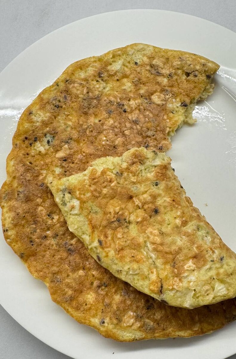 Лаваш - 30 гр. Сыр (натереть) - 30 гр. Яйцо - 1 шт. Белок яичный - 1 шт. Семена микс - 1 ст.л. Лаваш мелко нарезанный смешиваем с остальными ингредиентами и жарим на капле масла под крышкой с двух сторон. У меня всегда лаваш лежит в морозилке на этот случай. Замороженный лаваш проще измельчить, пальчиками жмяк-жмяк и готово.