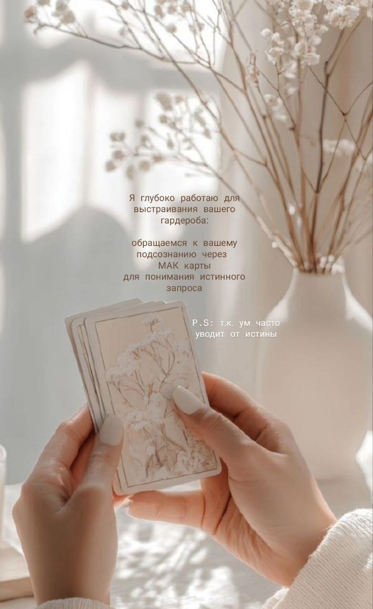 ?" Я в стиле работаю глубоко для выстраивания вашего гардероба Сначала узнаем ваш истинный запрос - какие сейчас изменения хочется на самом деле в жизни и как поддержать себя в этом через одежду Давайте сейчас проведем диагностику в стиле, чтобы вам сейчас помогло себя чувствовать лучше, получить внутренние опоры, пойти в направлении выбранной цели ❓Что видите на картах, что откликается или не нравится, пишите в комментариях⏬ или в лс #стилист #стилистонлайн #гардероб #истинныйзапрос #маккарты