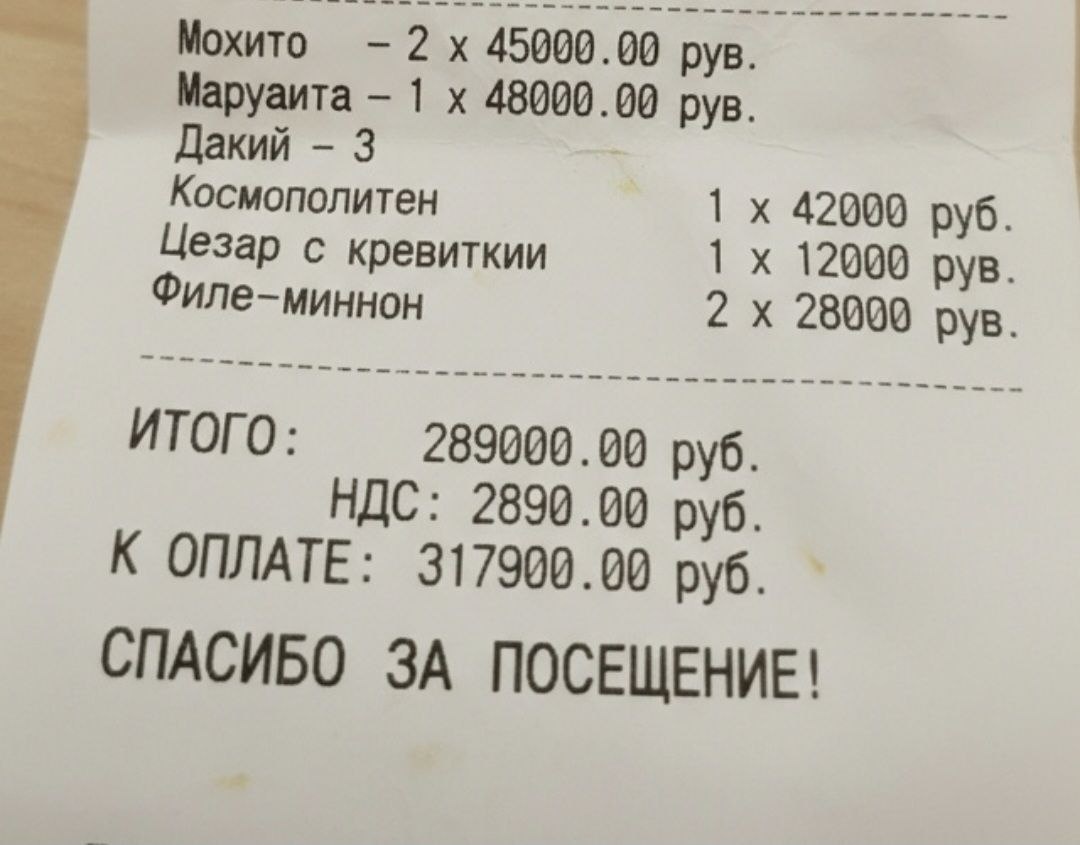астрономические суммы за обычные заказы. Мужчины были приглашены в ресторан девушками, с которыми они недавно познакомились. После совместного ужина молодые люди были вынуждены оплатить счета на сумму от 40 до 50 тысяч рублей за несколько позиций меню и напитки.