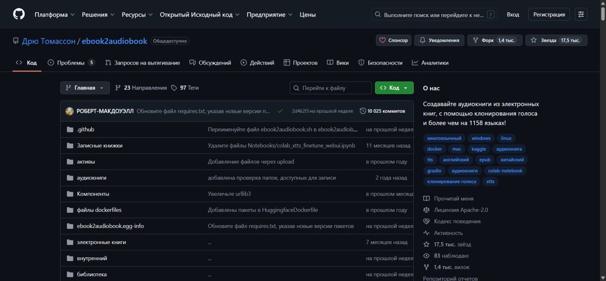 Локальный конвертер электронных книг в аудио: выпущен проект ebook2audiobook