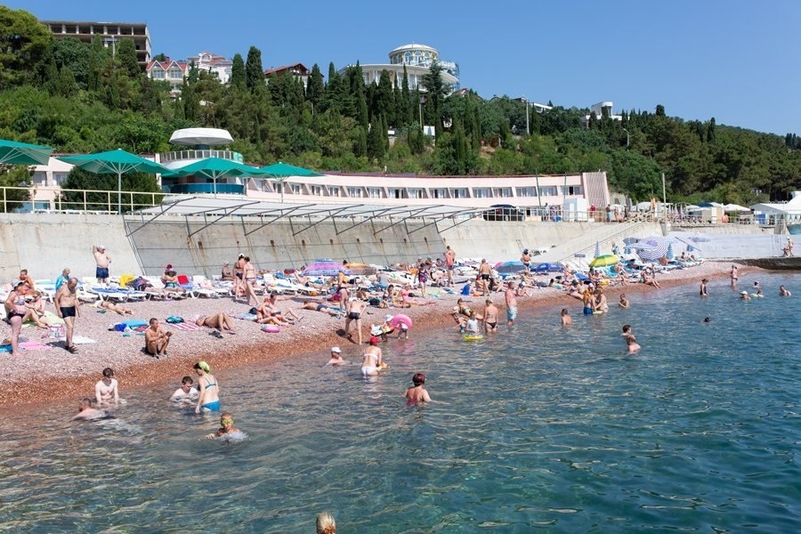 Одно из главных преимуществ отдыха в курортном отеле "Морской уголок" - это пляж, расположенный всего в 25 м от корпуса