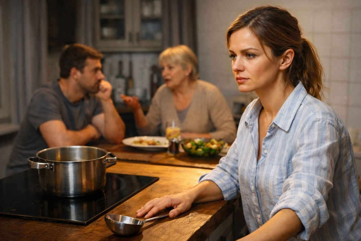 Марина чувствовала, как кухня перестает быть ее пространством. Она начинала нервничать, когда слышала звонок в дверь. Ловила себя на мысли, что готовит уже не для удовольствия, а как будто на проверку.