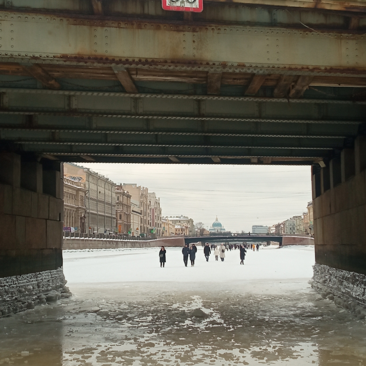 Под мостами в основном стоит лед и там очень скользко, а под некоторыми даже вода, и срашно идти. Было бы, если бы там не ходили толпы прямо у вас на глазах. В том числе и туристы из страны восходящего солнца, бесстрашные ловцы момента.