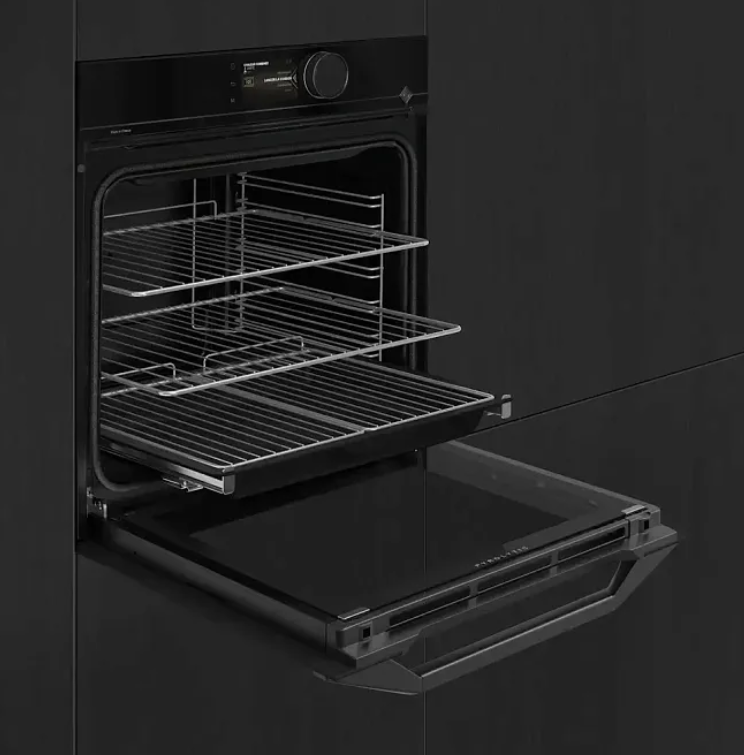 Опция пароувлажнения — значимое преимущество в компактной духовке. Подача пара в начале выпечки предотвращает пересыхание теста, помогает получить воздушный бисквит или хрустящую хлебную корочку. Режим «Пар + нагрев» идеален для приготовления сочных стейков или овощей. В моделях 45 см парогенератор, как правило, компактный, а вода заливается в специальный отсек на панели управления.