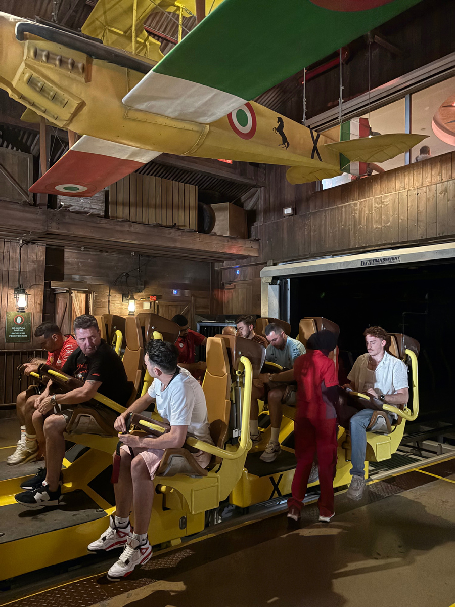 После чего мы посетили выставку исторических болидов Ferrari, аттракционы Turbo track и миссия Ferrari, посмотрели как меняют шины болидам на тренажере пит стопа формулы 1 (есть возможность и самому поучаствовать), прогулялись по улочкам в стиле итальянского города Модена (так как Энцо Феррари родился и вырос в этом городе), выпили кофе, а на десерт отправились на аттракцион под названием Flying aces.