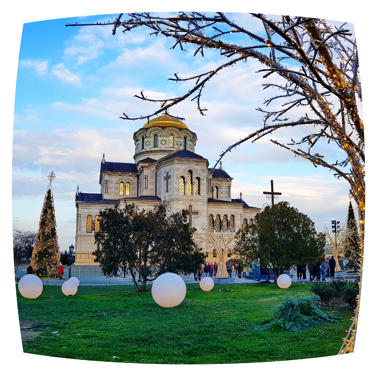 Обходя большой и громкий народно-развлекательный праздник, развернутый на центральных дорожках заповедника, подхожу к Свято-Владимирскому собору. Обозреваю новшество - огромные искусственные елки выставлены на площади перед храмом. Вечером здесь довольно красивая подсветка. Но мне это непривычно... Направляюсь в храм. Для попадания внутрь приходится выстоять внушительную очередь, потому что праздничный аншлаг на входе. Ожидаемо) Поставив свечи в нижнем храме, поднимаюсь в верхнюю часть... В раздумьях о том, как неумолимо время летит, как все меняется, как сложно успеть за изменениями, как вообще всё вокруг непросто, покидаю храм... Хочу к морю, на городище... но надо еще понять и постараться, как бы так пройти, чтобы не упереться в забор или "несвятое кафе" ... Пока продолжаю рождественскую прогулку по Херсонесу, стараясь отвернуть взор от того, что видеть совсем не хочется. Но это сложно. Как вы уже, наверное, поняли, организационные нововведения, коснувшиеся заповедника в последние