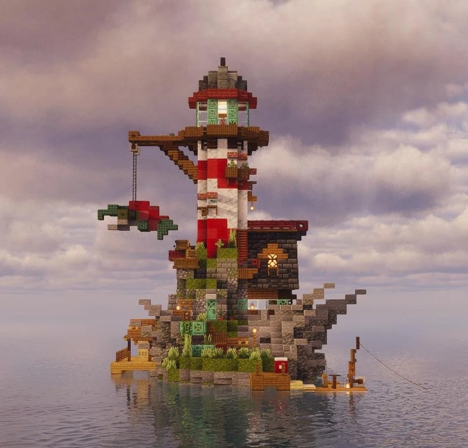 🐟Класссная идея для постройки: маяк с домиком смотрителя