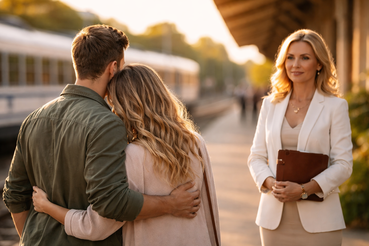 Сергей поднял чемодан на верхнюю полку, сел рядом и обнял её так крепко, будто боялся отпустить.