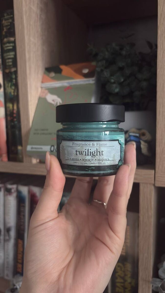 #книгополия_шанс Ячейка «Шанс» в Книгополии принесла мне задание «Купить свечу по книге». Я ее сразу заказала, а вот теперь несу хвастаться! Казалось бы, пик популярности «Сумерек» был больше десяти лет назад — и вот я здесь: во-первых, собираюсь перечитывать всю сагу, а во-вторых, купила по ней свечку. Слива, мускус и морось на деле пахнут как дорогой, но сладковатый мужской парфюм. Интересно, как аромат раскроется при горении! А расскажите-ка мне пока о своих любимых ароматах: что вам нравится больше всего?)