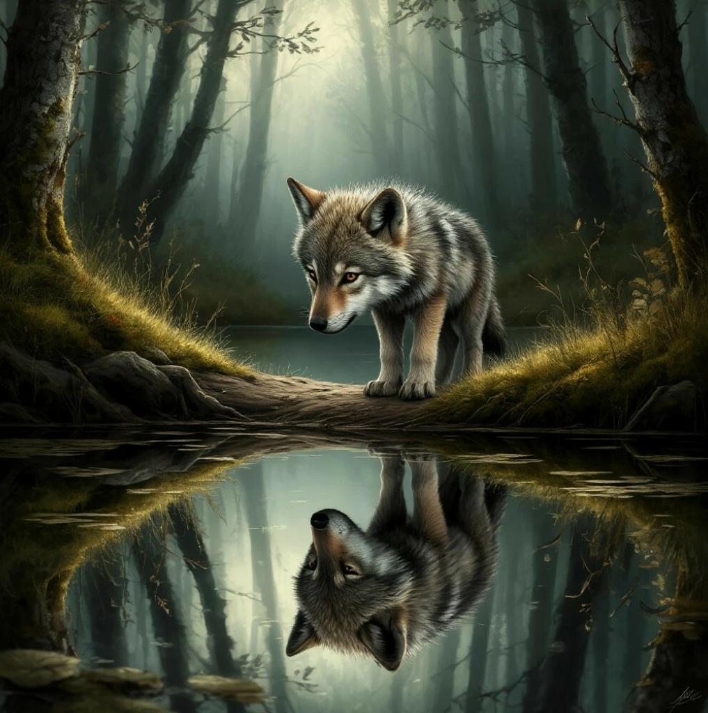 Волчонок задумался. А потом… он сделал то, чего не делал никогда. Он помахал хвостом. Тень на земле весело махнула в ответ. Он наклонил голову. Тень склонилась. Он тихо зарычал — и тень будто бы напряглась. Это был диалог. Молчаливый, но самый честный в его жизни.